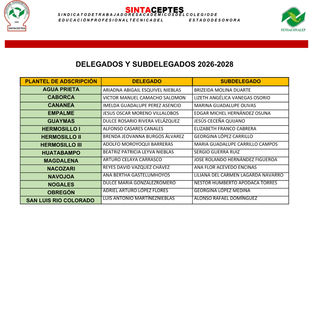 Directorio de Delegados y Subdelegados 2026-2028